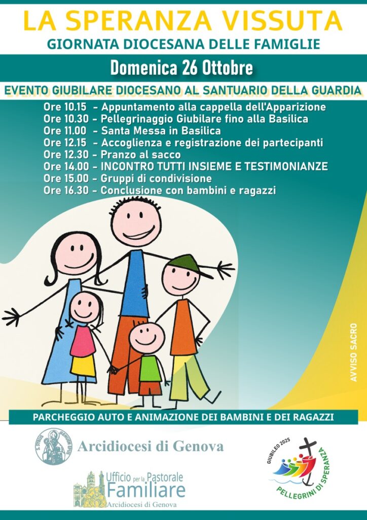 Domenica 26 ottobre al Santuario della Guardia è in programma il Giubileo della Famiglia al Santuario della Guardia.
