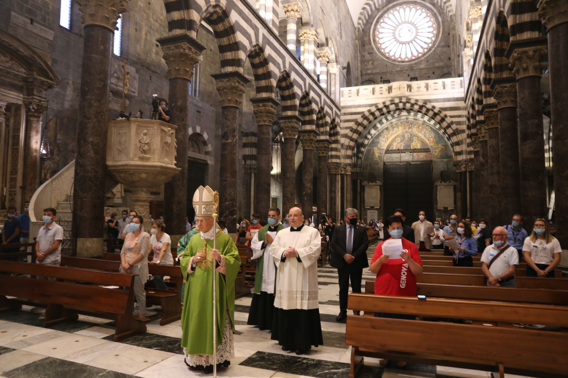 Sabato 27 giugno il Cardinale Bagnasco ha voluto salutare anche in particolar modo i giovani, con una Santa Messa in Cattedrale, organizzata e animata dalla consulta diocesana di Pastorale Giovanile e in particolar modo dal coro del Movimento Liturgico Giovanile, a cui ha potuto partecipare una rappresentanza di duecento ragazzi e ragazze di tutta la diocesi – tutti hanno potuto comunque seguirla in streaming grazie alla diretta realizzata dall’Ufficio Comunicazioni Sociali diocesano.Alla Messa è seguito anche un piccolo momento di festa in piazza san Lorenzo, per scambiarsi più da vicino qualche saluto e qualche piccolo pensiero o regalino, mangiandosi tutti insieme un buon gelato, come nelle più belle sere d’estate insieme, riguardando qualche fotografia o leggendo insieme qualche bigliettino e qualche intenzione di preghiera raccolti l’occasione.