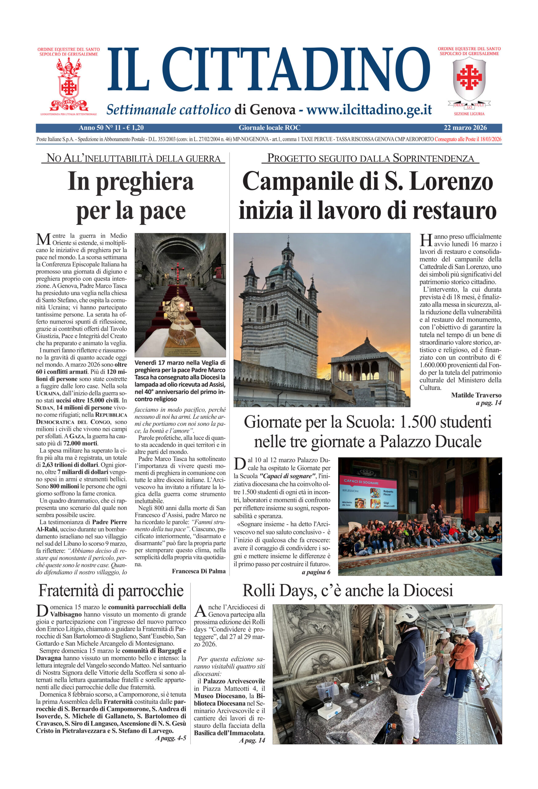 In questo numero: Campanile di S. Lorenzo: inizia il lavoro di restauro Valbisagno, l’ingresso di Don Enrico Litigio come parroco moderatore di quattro parrocchie Le sfide dell’Intelligenza Artificiale: giornata di studio di ISSRL Mensa di Vallata: 10 anni di solidarietà Dal 9 al 16 aprile la terza edizione del Festival Biblico