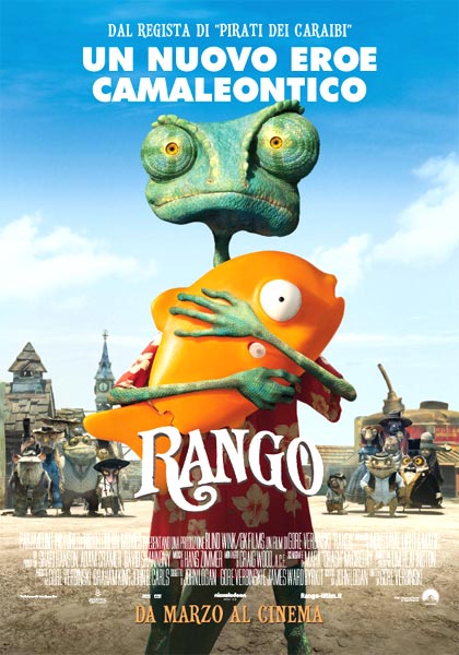 C’è un camaleonte che vive in acquario, con la sola compagnia di una finta palma, una bambola mezza rotta e che passa il suo tempo credendosi un attore. Mentre viene trasportato in macchina in un viaggio dagli Stati Uniti al Messico, improvvisamente il camaleonte finisce fuori dalla macchina e catapultato improvvisamente nel deserto. Ma da lì si troverà a Polvere, in un villaggio da Far West con il saloon, l’ufficio dello sceriffo e, naturalment, con i cattivi di turno che spadroneggiano sugli abitanti. Ancora grandi soddisfazioni dal cinema d’animazione. Questa volta si è cimentato nell’impresa il regista di “Pirati dei Caraibi” Gore verbinski (origini polacche) che ha firmato un’opera a metà tra l’avventura corsara (come ne “I pirati”, vi sono creature dall’aspetto piuttosto originale, a tratti mostruoso) e il miglior Far West in stile Sergio Leone. Che il film avesse a che fare col cinema western si avvertiva già dal titolo “Rango”, che ricorda subito il Ringo di Giuliano Gemma, nonché un personaggio di Clint Eastwood: infatti, lo stesso Rango, rappresenta il cavaliere solitario che arriva nel paese e sistema i cattivi, stavolta nella forma di perfidi serpenti e testuggini che portano via l’acqua alla gente del villaggio.I personaggi sono convincenti, grande cura è dedicata anche a quelle figure che nei film western sono date dai caratteristi, secondari ma che sono fondamentali nell’azione. Sono molte anche le diverse citazioni filmiche, dalla “Cavalcata delle Valchirie” di Apocalypse Now a “Mezzogiorno di fuoco”, perfino “Gli uccelli” di Hitchcock. Il tutto condito dalle gags più classiche e, perciò, sempre efficaci. Un film tutto realizzato in Inghilterra con l’Industrial Light & Magic, specializzata in effetti speciali. Il risultato è un mix che riesce a conciliare più di un messaggio e diversi registri: così il camaleonte a forza di credersi un attore che interpreta il personaggio buono, diventa buono davvero e lotta perché tutto il villaggio abbia giustizia e… l’acqua.