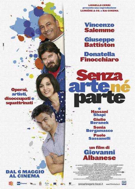 Enzo, Carmine, l’indiano Bandula sono tre operai che lavorano nel Pastificio Tammaro; quando vengono licenziati viene loro offerto un lavoro in nero come custodi di un magazzino che contiene opere d’arte contemporanea. All’inizio le opere sembrano loro incomprensibili, ma scoprendone il valore economico decidono di “buttarsi” sul mercato dell’arte.Ultimamente il tema del lavoro emerge in modo prepotente in molte commedie italiane, portando alla ribalta tutta quella parte di umanità che cerca un riscatto attraverso i pochi mezzi a disposizione. In questo senso “Senza arte ne’ parte” rientra nel genere di commedia che da Totò (come dimenticare l’episodio in cui vende la Fontana di Trevi ai turisti in “Totò Truffa”?) a Manfredi e a Gassman, fa divertire scherzando anche su quelli che, nella realtà, sono autentici drammi. Nel film emerge anche la volontà di far incontrare due mondi distanti tra loro: quello del lavoro operaio e quello elitario ed esclusivo che ruota intorno al mercato dell’arte. Naturalmente il film non è al livello delle grandi commedie all’italiana, anche se gli effetti tragicomici di tutta la vicenda divertono e i bravi protagonisti suscitano simpatia, ma “Senza arte ne’ parte” rimane soprattutto un film piacevole, senza davvero entrare nella profondità dei temi trattati come quello, importantissimo, del lavoro. Insomma il film di Albanese non è proprio “La banda degli onesti”, ma lo si guarda volentieri.Mariangela Grilli
