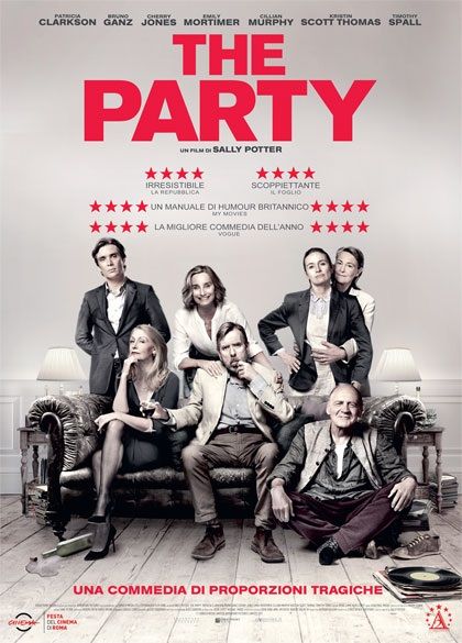 Sally Potter (suo il film “Orlando” che negli anni ’90 aveva riscosso un enorme successo) firma un’opera a metà tra la commedia più nera e la tragedia. L’ambiente è quello politico e intellettuale che dovrebbe rispecchiare ideali e raffinatezze, ma che nasconde invece gravi ipocrisie e una buona dose di cinismo. I sette personaggi della storia sono emblematici di questioni molto dibattute negli ultimi tempi: dalla finanza spregiudicata, al tradimento, alle coppie gay, la fecondazione in vitro, alla new age. Basti qui ricordare che “party” può stare sia per “festa” che per partito politico. Basta però una confessione perché tutto vada in pezzi e si riveli, dietro la maschera di un’apparente raffinatezza, un’ipocrisia imperante e un’ideologia assai fragile. L’impianto è quello teatrale che ricorda “Carnage” di Roman Polanski, ma con una regia tutta in bianco e nero e ambientato in un interno “casalingo” che diventa sempre più claustrofobico. Il cast non poteva essere scelto meglio, con una Kristin Scott Thomas perfetta nella parte di Janet. “The Party” è un’opera che sa essere anche molto ironica e non mancano battute davvero divertenti e argute, ma che richiede un pubblico preparato per i temi complessi che mette in campo e che non mancheranno di far discutere.