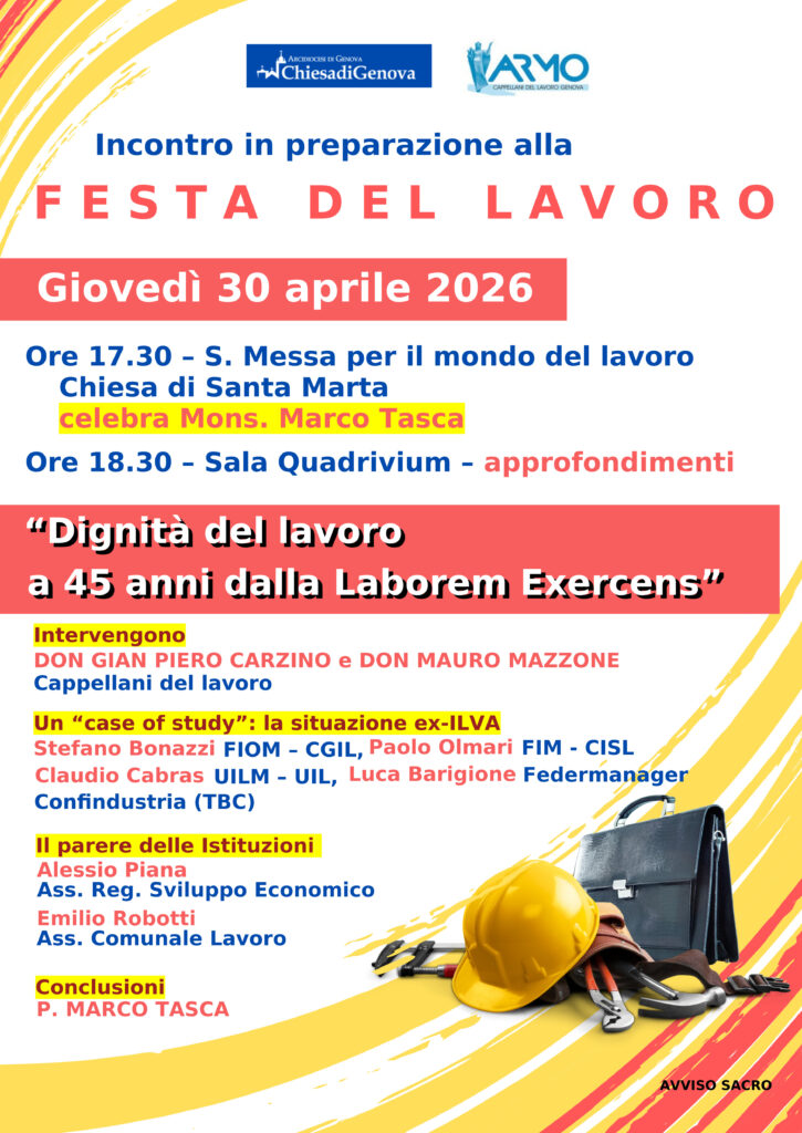 Per il terzo anno consecutivo l’Arcidiocesi di Genova precede il primo maggio, festa dei lavoratori, con un evento in preparazione, organizzato dall’Ufficio Problemi Sociali, Lavoro e Custodia del Creato, coordinato da don GianPiero Carzino.